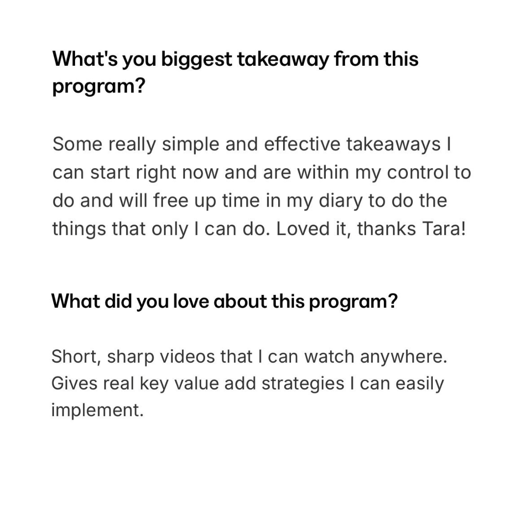 Working with Tara has helped me be clearer and less apologetic when delegating.